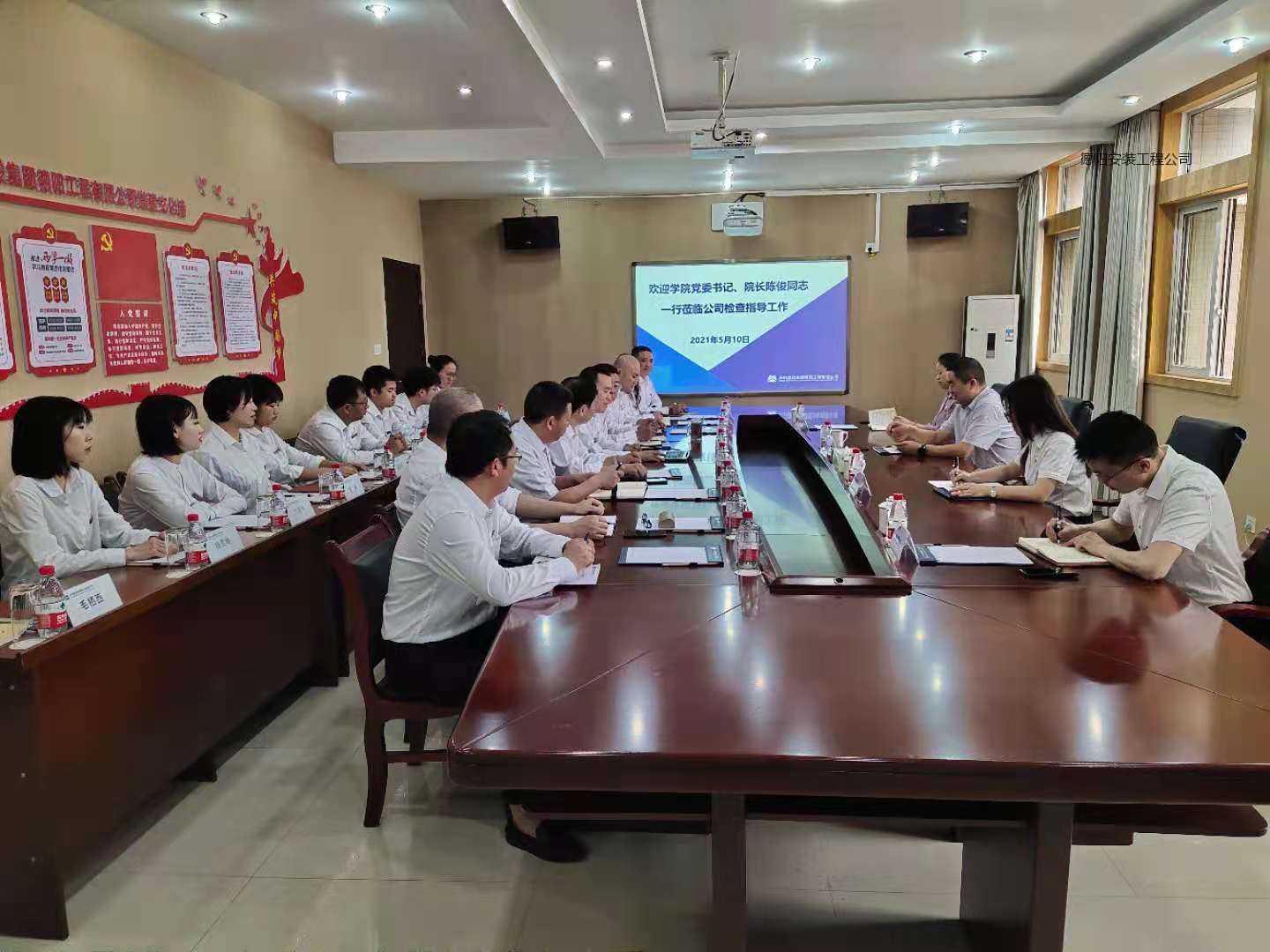 5月10日上午9:00,德陽安裝技師學(xué)院黨委書記、院長陳俊、黨委工作部部長羅瑩瑩、人力資源部、黨委組織部部長曹利琴、院辦綜合管理干事李雪峰一行4人到公司調(diào)研指導(dǎo)工作。公司黨支部書記、執(zhí)行董事、總經(jīng)理劉先華、常務(wù)副總經(jīng)理曾大林、副總經(jīng)理陳云華、張良柱、各職能部門負(fù)責(zé)人及員工共計(jì)18人參加了調(diào)研座談會。會議在公司506會議室召開。